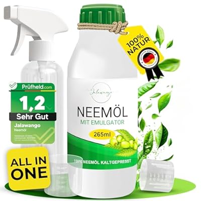 Beschreibung: Jalawango Neem l mit Emulgator [265ml] | 100% Nat rlich, Spr hfertig, inkl. Spr hflasche & Messbecher | Neem l ideal f r Sch dlingsbek mpfung Pflanzenschutz Garten- & Zimmerpflanzen Trauerm cken... [mehr lesen] Klicken, um die ganze Beschreibung anzuzeigen